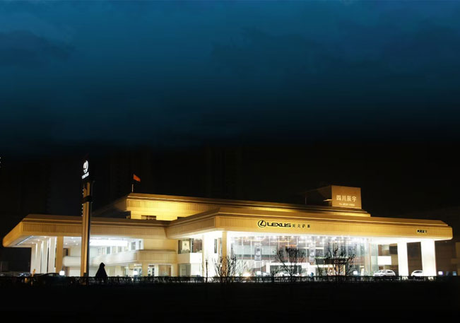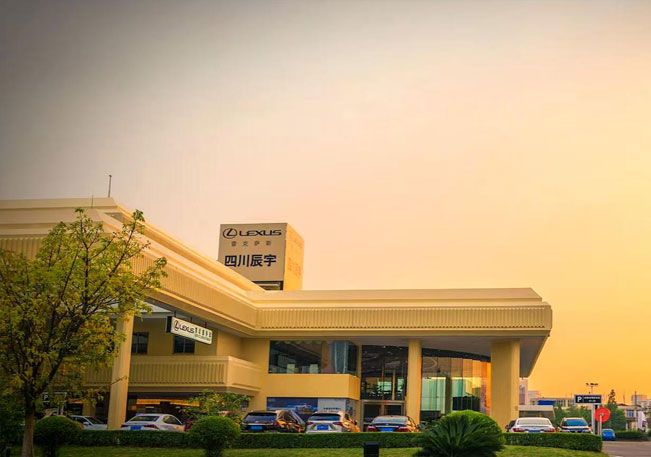 成都辰宇雷克萨斯:于2009年9月25日开始营业,位于成都市三环路南二段469号(琉璃立交至娇子立交辅道旁),背靠三圣花乡幸福梅林、金港赛道等集汽车服务、赛车运动、休闲于一体的新式汽车运动休闲区域。以LEXUS全新旗舰店的标准进行规划建设,占地面积20亩,建筑面积达10000平米。